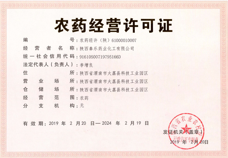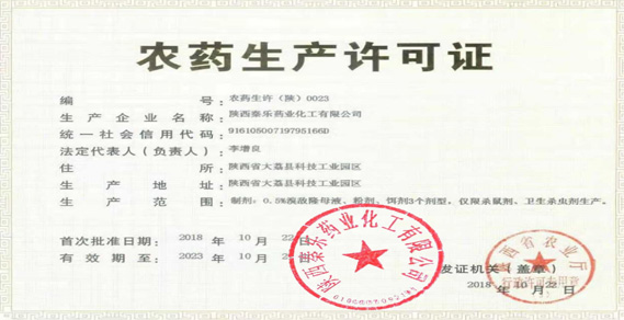 陜西秦樂(lè)藥業(yè)化工有限公司成立于1985年,是國(guó)家農(nóng)業(yè)農(nóng)村部批準(zhǔn)生產(chǎn)經(jīng)營(yíng)的農(nóng)藥企業(yè)。公司 擁有設(shè)備精良、工藝先進(jìn)的生產(chǎn)基地,年生產(chǎn)設(shè)計(jì)能力達(dá)20000 噸, 產(chǎn)品,滿(mǎn)足不同 市場(chǎng)的需求。多年來(lái),公司憑借卓越的品質(zhì)和卓越的服務(wù)贏(yíng)得了廣大客戶(hù)的信賴(lài)和支持。